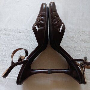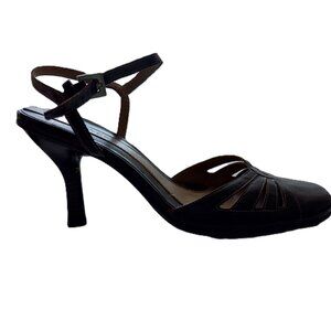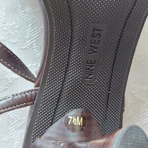 Nine West Slingback Solid Women's Leather Upper Heels Sandals, Size 7.4