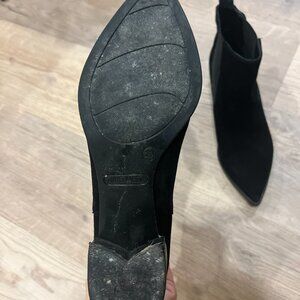Black pointed toe suede chelsea boots, size 6.5 with gold accents! A really beautiful shoe, I just have too many pointed boots. Great condition, the suede is well maintained.