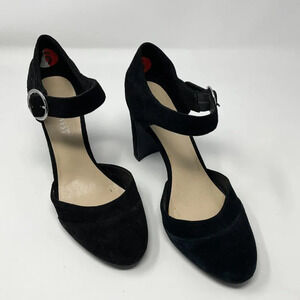 Nine West Suede Leather Ankle Strap Round Toe Heels Pump Black Size 6