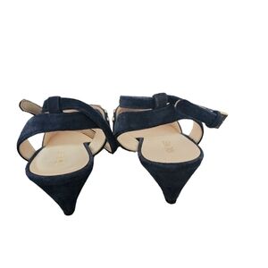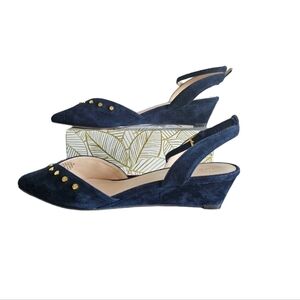 Nine West Suede Navy blue gold tone studs, low wedges, ankle strap pointed toe shoes, sandals. Slingbacks.Never worn outside of the house.
