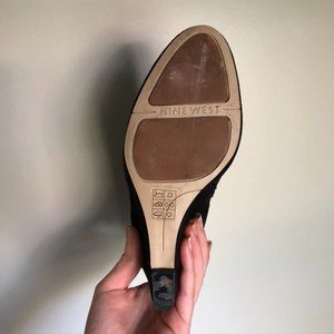 Suede Wedge Booties In Black by Nine West. W7, Narrow fit. Great condition! Only worn a couple times to special events.