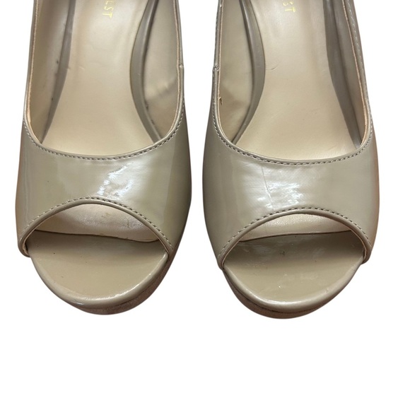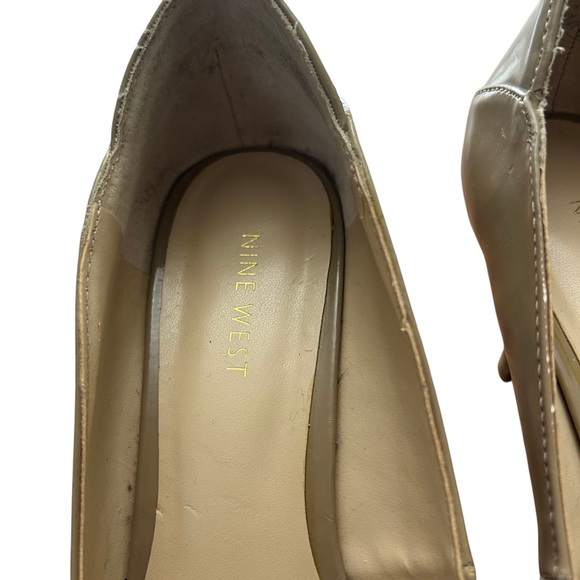 Stylish peep-toe heels by Nine West. Sleek design with a glossy finish. Ideal for any occasion.