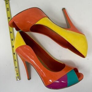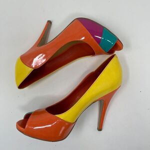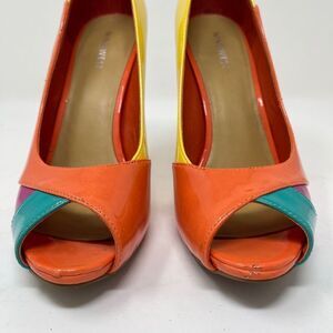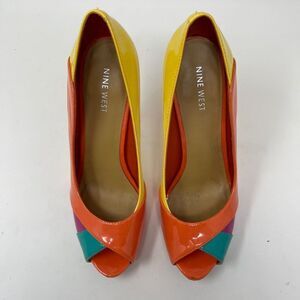 Vintage Nine West Women's Flamingo Pumps Heels Peep Toe Slip On Colourblock Size 8M