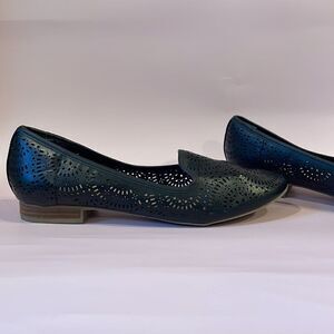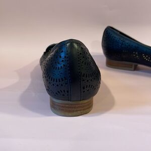 Nine West Women Size 6.5 M Black Faux Leather Loafer w Medallion Detail Venting