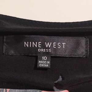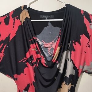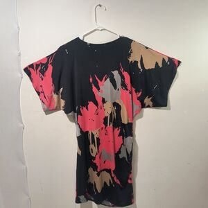 Nine West Women's 10 Pink & Black Abstract Paint Draped Neckline Mini Dress.