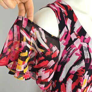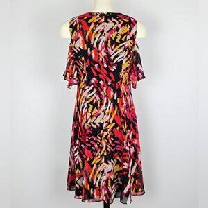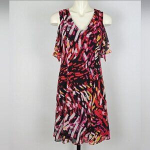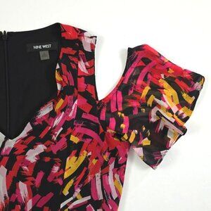 Nine West Women’s Cold Shoulder Shift Dress Pink Black Abstract Print Size 4
