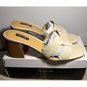 Nine West Women's Griselda Heeled Sandal Chic Cream Open Toe Block Heel 10M