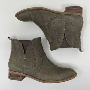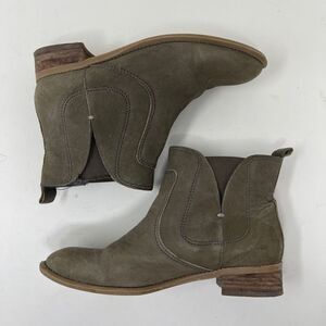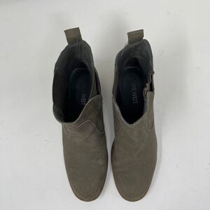 Nine West Women's Jupiter Chelsea Ankle Boots Mid Heel Suede Olive Green Size 5.5M