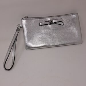 Nine West Women's Wristlet Silver Shiny Bowtie