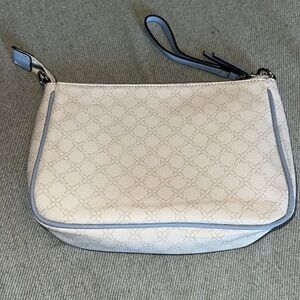 Can attach wristlet strap to both sides - could attach a purse strap if you have one