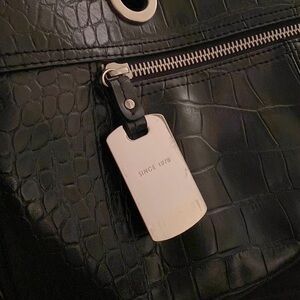 Nine West black carryall in croc 🐊 style material, w/ silver tone hardware. 🖤 Logo bag tag on the exterior. 🏷️