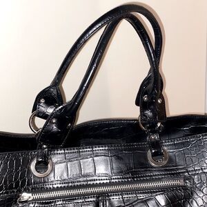 Nine West black carryall in croc 🐊 style material, w/ silver tone hardware. 🖤