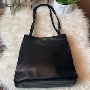 - Beautiful black leather shoulder bag with divider inside ,exterior 1 zipper pocket interior 1 zipper pocket