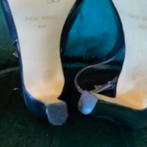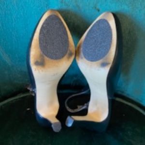 Some signs of wear, but lots of wear left. Very comfy even though it is a high heel. Purchased from Postmark but did not wear. Perfect with a pencil skirt and fitted blouse. Some wear on the inside but lots of wear left (see pics)