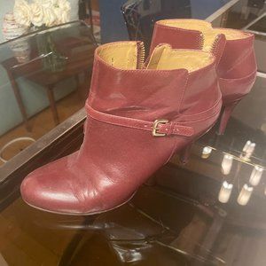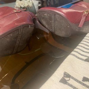 Super cute burgundy low boots. Comfortable with a rubber sole. Small kitten heel for those who need a little pick me up!