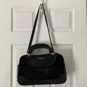 Gorgeous handbag with cross body strap. Black leather cowhide (see tag) on face of bag. Silver hardware. Multiple compartments inside and on exterior. In immaculate condition, been in storage do not use it often. Needs to be enjoyed. See photos for details.
