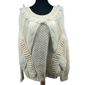 Nine West cream wool blend chunky knit sweater boho fringe sweater sz lg