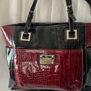 Nine West Black and Red Purse, Large ,Two Handles, Three Exterior Pockets , large inside with one small inner pocket, Magnetic Clasps, Black inner lining