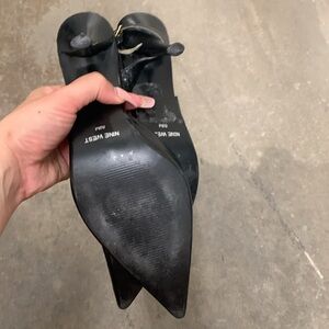 Elevate your style with Nina's sophisticated black slingback heels, featuring a sleek pointed toe and a chic croc-embossed pattern. The medium-height stiletto heel offers a perfect blend of elegance and comfort, making them ideal for both business and formal occasions. The adjustable slingback strap ensures a secure fit, adding to the shoe's refined appeal.