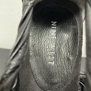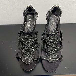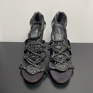 Nine West sandal stiletto black braided leather zipper platform US7.5