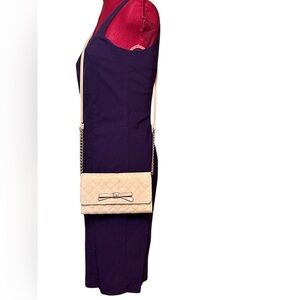 Nine West velvet quilted crossbody bag blush with gold bow and chain accents
