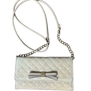 Nine West velvet quilted crossbody bag blush with gold bow and chain accents
