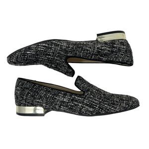 Nine West Loafer Lisette Flats Black White Gold Tweed Women's 6.5 Slip-On