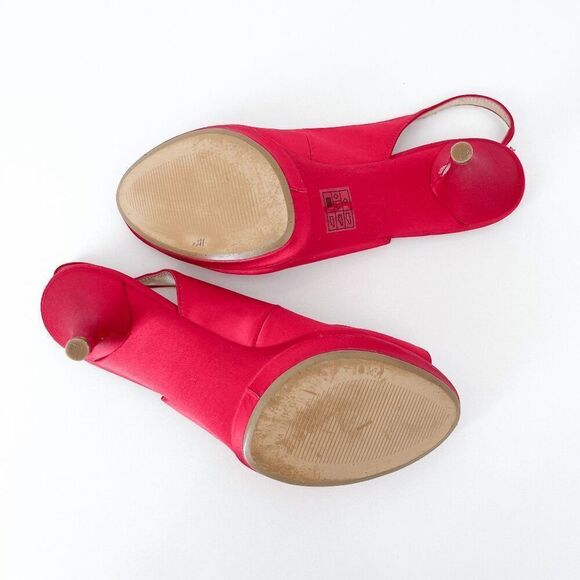 Nine West Womens Satin Slingback Platform Peep Toe Heels Red Size 9