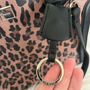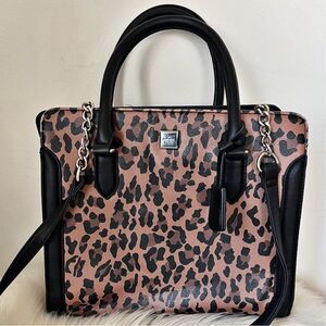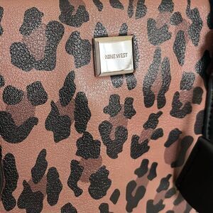Nine West Leopard Print Satchel Bag Faux Leather Chain Strap