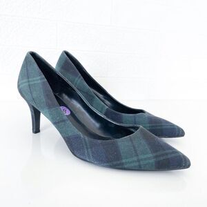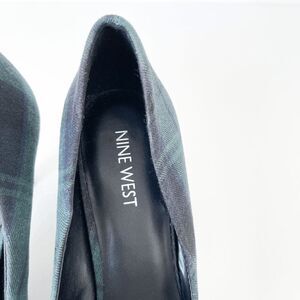 Nine West Womens Heels Plaid Evermoreo Pumps Kitten Heel Pointed Toe Blue Green Size 8