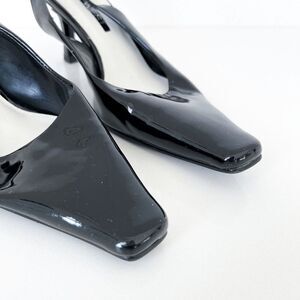 Nine West Womens Patent Leather Square Toe Slingback Heeled Pumps Black Size 6M