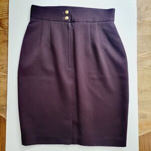 Vintage aubergine purple pencil skirt from Nine to Five Crocodile. Excellent condition, like new. Sorry, my camera seemed to be allergic to this colour, so the photos make it look a bit patchy and weird but it's just a nice dark aubergine purple color.
