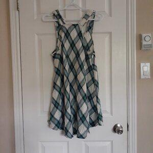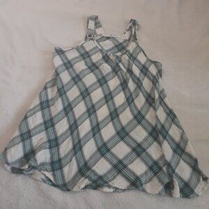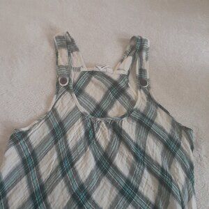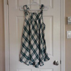 Ninety Women's Size XL White Teal Plaid Cotton Gauzy Y2K Jumper Mini Tunic Dress