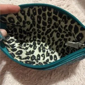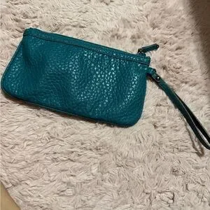Stylish teal wristlet with silver studs. Perfect for a night out.