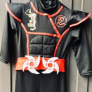 Ninja Halloween Costume Kids Size S with Belt - Black & Red