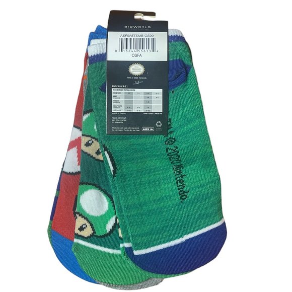 Nintendo Super Mario Bioworld 5 Pack No Show Socks Women’s 5-10 NWT
