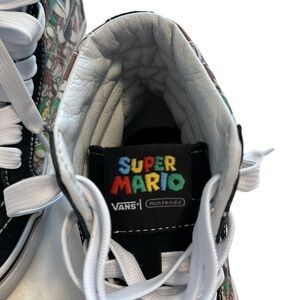 In great condition, but see that last 2 photos for the small flaws. The vans logo on the back is worn, and also see the worn spots on the fabric on the left shoe. Luigi’s mouth, and another spot closer to the front of the shoe on Mario and Luigi’s faces. That side is on the inside of the shoe so it will not be very visible. See last 2 photos.