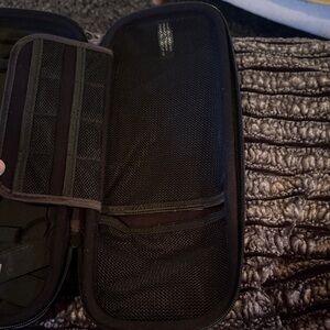 Sleek gray hard shell case with zipper closure. You can store your Nintendo switch, a Pokémon ball, 8 games and other accessories. Used but in good shape.