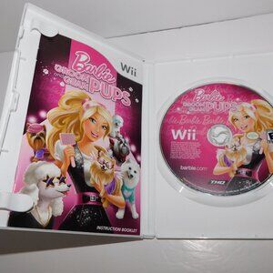 This Nintendo Wii Barbie Groom and Glam PUPS Video Game is in Great Working condition Complete with Manual