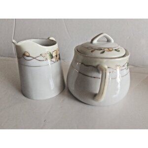 Nippon Hand-Painted Floral with Gold Trim Sugar Bowl & Creamer Set 1930's