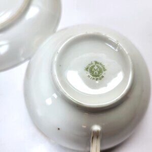 Nippon Teacup and Saucer Set Vintage Hand Painted Blue Flowers Gold Trim