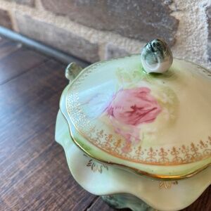Original Nippon tea set. Shabby chic in style, mint green, and pink roses. Rare pieces