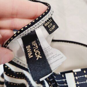 Niptuck Swimsuit One Piece Size 8 US Striped Black White Gold Multi-Fit Cup