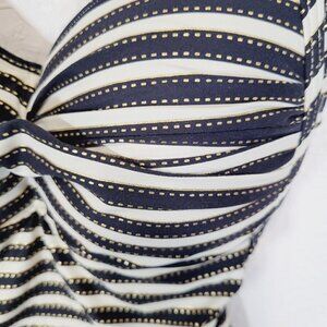 Step out in style at the beach or pool with this Niptuck one-piece swimsuit in size 8. Featuring a striking black, white, and gold striped design, this swimsuit is sure to turn heads. Made from a comfortable nylon blend with soft cups and adjustable straps, this swimsuit provides both support and style for a day of swimming or lounging by the water. Perfect for any woman looking for a chic and flattering swimwear option.
