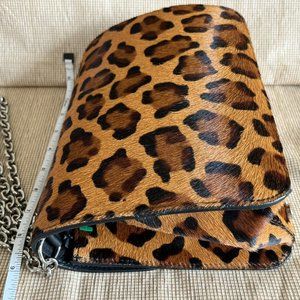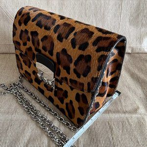 Niquea.D Purse Women’s Brown Animal Print Leather, Silver Chain Strap, HandBag