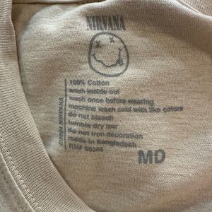 Embrace classic rock style with this Nirvana beige graphic t-shirt. Perfect for casual outings, this shirt combines comfort with iconic design.