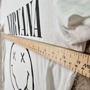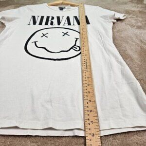 Nirvana Smiley Face T-Shirt Spell Out Logo White Tee Short Sleeve Women's Size S