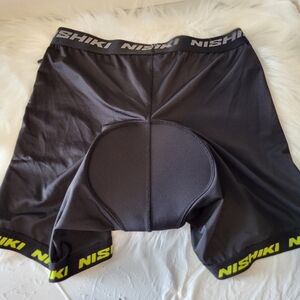 Nishiki cycling shorts in black with neon green accents. Comfortable and stylish for cycling enthusiasts.