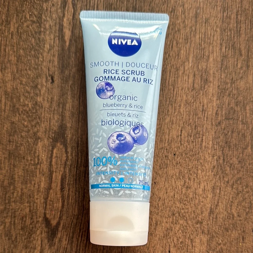 Nivea Smooth Rice Scrub with organic blueberry and rice. Perfect for normal skin. Brand New 75 mL
