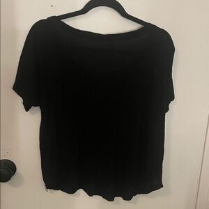 Chic black tee featuring a bold striped design. Perfect for casual outings. Soft and comfortable fit.